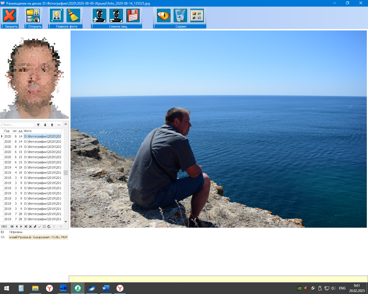В левой части окна находится главное фото, под ним список фотографий в фотоальбоме персоны (список 1),